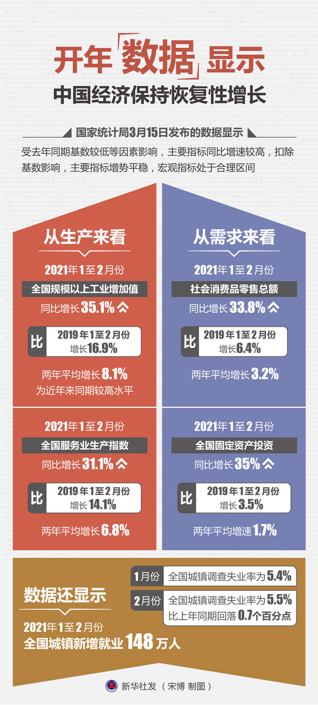 圖表:開年數據顯示中國經濟保持恢復性增長 新華社發 宋博 制圖