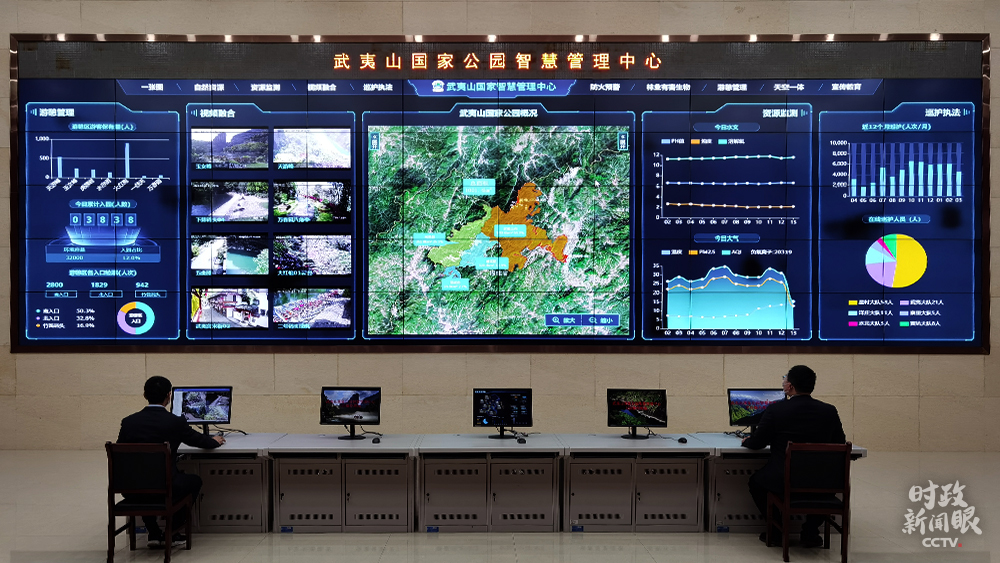智慧管理中心是武夷山國家公園的“智慧大腦”,綜合運用互聯網、物聯網、衛星遙感等信息技術,通過大數據采集和分析,可以實時掌握當日入園人數,監測預警水質、大氣、森林防火等情況。