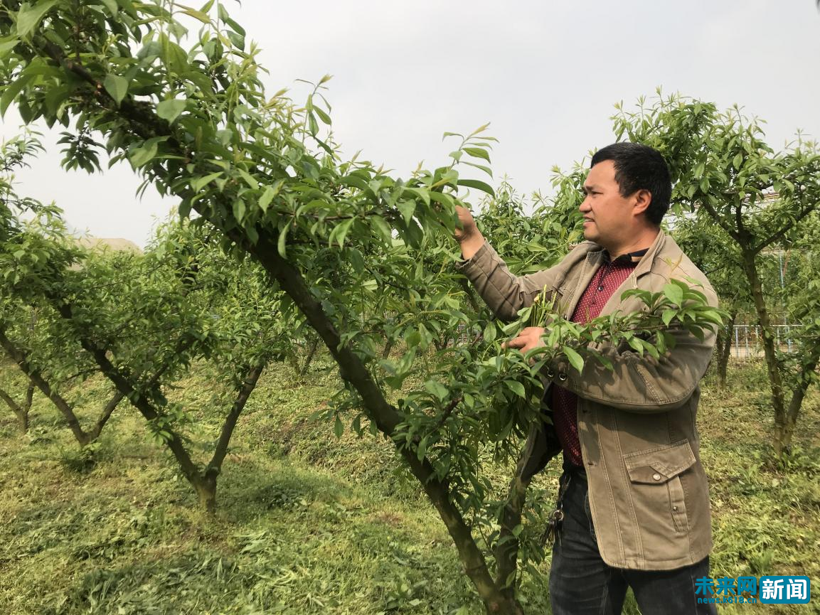 楊中才在采摘園工作。(未來網記者 謝青攝)