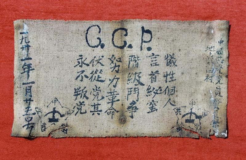 在這份24個字的入黨誓詞中,有6個錯別字格外引人注目。中共永新縣委史志辦主任彭朝勝介紹,由于條件有限,當時,只準備了一塊紅布,入黨介紹人發(fā)現(xiàn)有錯別字,要再寫也沒有布了,所以就將錯就錯,就把這個作為入黨宣誓書的誓詞。