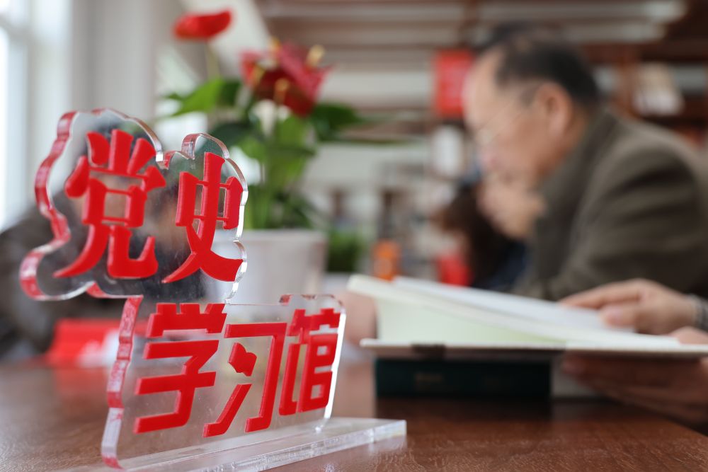↑2021年3月16日,人們?cè)诤颖秉S驊市驊中街道信譽(yù)樓社區(qū)黨史學(xué)習(xí)館學(xué)習(xí)黨史。