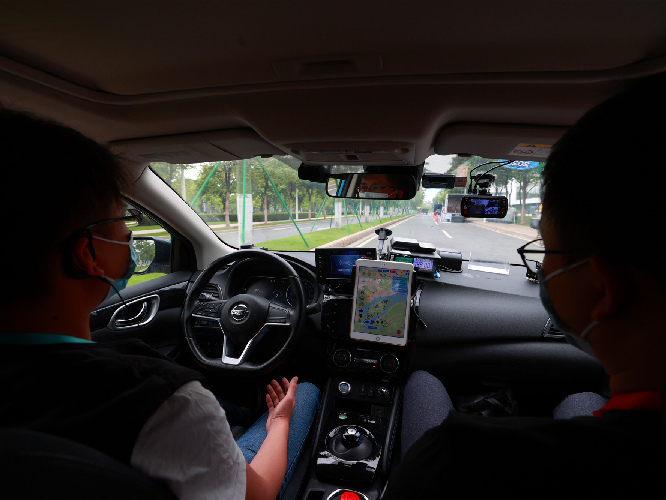 4月20日,廣州生物島文遠(yuǎn)知行公司,工作人員正在展示該公司自主研發(fā)的無人駕駛技術(shù)。人民日報記者 張武軍攝