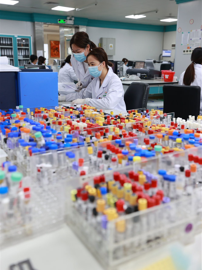 4月20日,廣州生物島金域醫(yī)學(xué)公司內(nèi),實(shí)驗(yàn)人員正在工作。人民日報記者 張武軍攝
