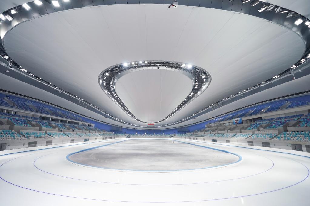 這是2021年1月22日拍攝的首次制冰完成后的國家速滑館內景。新華社記者 鞠煥宗 攝