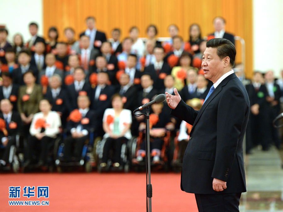 2014年5月16日,習近平在北京人民大會堂會見第五次全國自強模范暨助殘先進集體和個人表彰大會受表彰代表。新華社記者 馬占成 攝