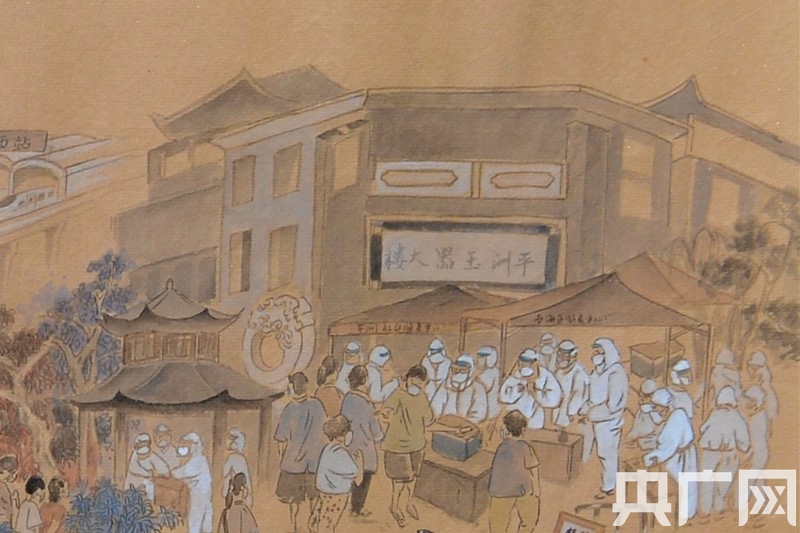 值得一提的是,作者還將很多現實中的動人場景也融入其中。比如,多位醫務人員因為太過疲憊,或趴在椅子上休息,或蜷縮在桌子旁;比如,黨員志愿者嚴守一線,維護現場秩序……