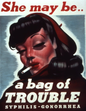 △二戰(zhàn)前后,美軍中性病盛行,嚴(yán)重影響了軍隊(duì)的戰(zhàn)斗力。美軍制作了很多宣傳海報(bào),告知士兵“買(mǎi)春”的危險(xiǎn)。圖片來(lái)源:商業(yè)內(nèi)幕