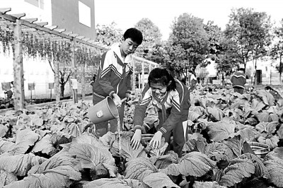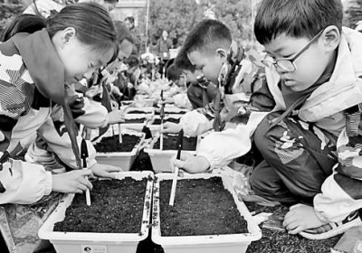 江蘇省太倉市朱棣文小學(xué)學(xué)生在種植綠色蔬菜。王建康攝/光明圖片