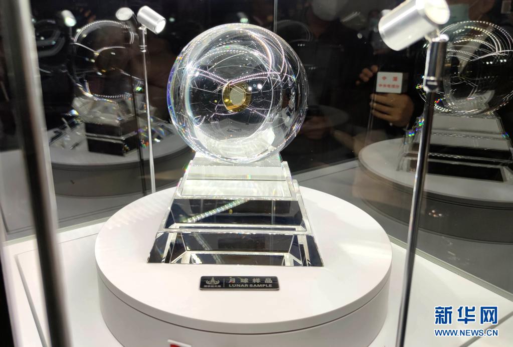 百年中國科學家主題展暨月壤展覽上拍攝的陳列的月壤(6月27日攝)。新華社記者 韋驊 攝