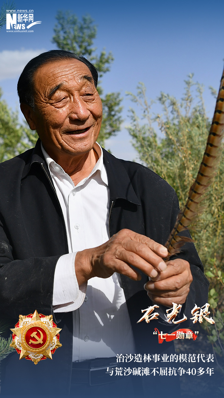 在陜西,有一位普通的黨員,就活成了白楊的樣子。他帶領當?shù)厝罕姡c荒沙堿灘不屈抗爭40多年,筑起了長達百余里的“綠色長城”,徹底改變“沙進人退”的惡劣環(huán)境。他就是“七一勛章”獲得者石光銀。