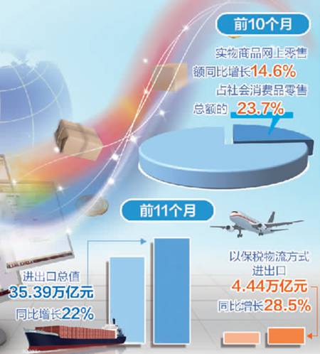 在消費(fèi)資源全球化配置的今天,“買全球、賣全球”漸成新趨勢(shì)。作為消費(fèi)新模式之一,跨境電商不僅是國(guó)內(nèi)國(guó)際雙循環(huán)的重要鏈接點(diǎn),也為消費(fèi)擴(kuò)容提質(zhì)夯實(shí)了基礎(chǔ)。今年以來(lái),新型消費(fèi)業(yè)態(tài)和模式加速發(fā)展,國(guó)家統(tǒng)計(jì)局?jǐn)?shù)據(jù)也印證了這一點(diǎn):今年前10個(gè)月,實(shí)物商品網(wǎng)上零售額8.49萬(wàn)億元,同比增長(zhǎng)14.6%,占社會(huì)消費(fèi)品零售總額23.7%。