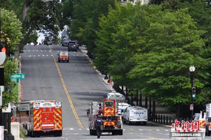 資料圖:當?shù)貢r間8月19日,一名男子駕駛黑色皮卡至國會圖書館前,并聲稱車上有炸彈。該事件導致美國國會大廈周邊街道封鎖。 中新社記者 陳孟統(tǒng) 攝