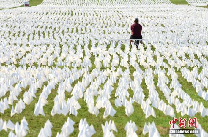 資料圖:當?shù)貢r間9月18日,美國首都華盛頓國家廣場上插著數(shù)十萬白色旗幟,悼念新冠逝者。 中新社記者 陳孟統(tǒng) 攝