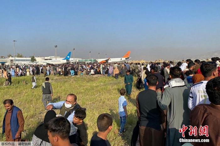 資料圖:當?shù)貢r間8月16日,等待撤離的人群聚集在阿富汗機場。據(jù)俄羅斯衛(wèi)星通訊社報道,美軍當天曾在喀布爾機場朝部分阿富汗人開槍,造成至少3人死亡。