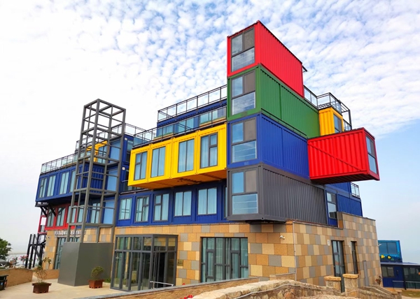 羊山島集裝箱小鎮建設為向海發展增添新色彩。邵澤賢攝