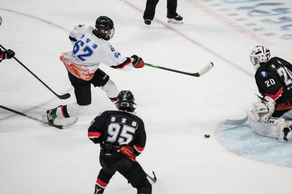 2021年4月4日,五棵松體育中心,運動員在冰球項目測試活動中。新華社記者 彭子洋 攝