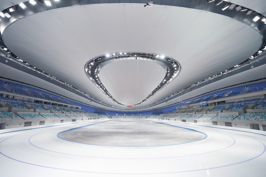 國家速滑館“冰絲帶”內景。
