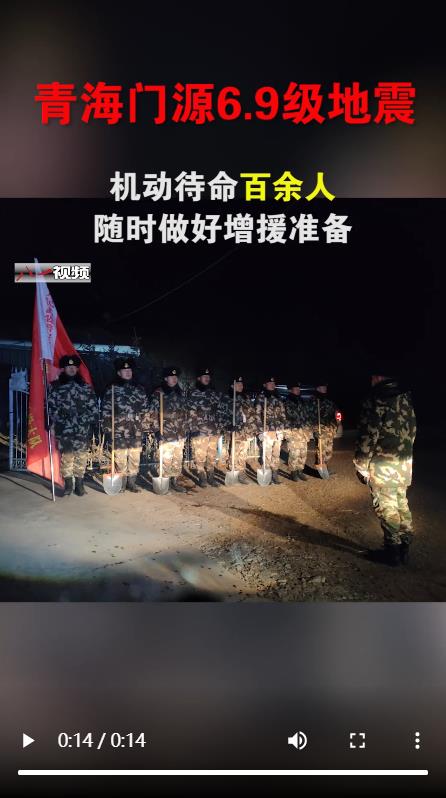 武警海北支隊(duì)第一批救援小分隊(duì)于5時許到達(dá)震中皇城蒙古族鄉(xiāng),隨即開展清理工作。其余人員正在縣城維護(hù)社會面秩序,機(jī)動待命百余人隨時做好增援準(zhǔn)備,目前暫無人員傷亡情況。
