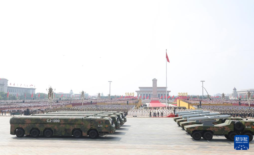 9月3日,紀念中國人民抗日戰(zhàn)爭暨世界反法西斯戰(zhàn)爭勝利80周年大會在北京隆重舉行。這是高超聲速導彈方隊接受檢閱。