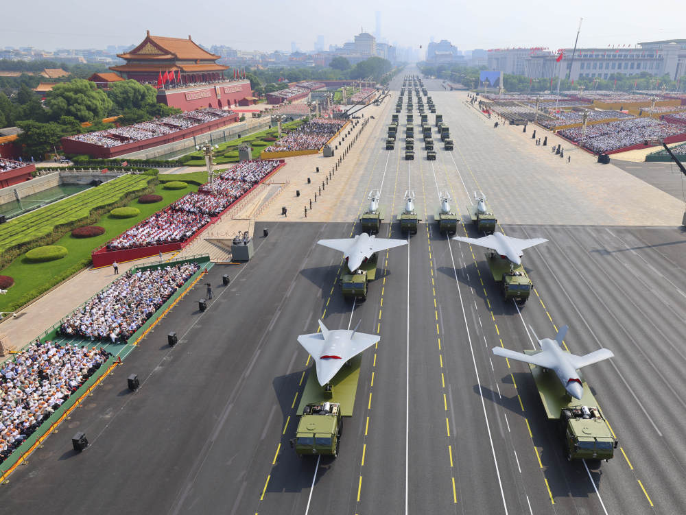 2025年9月3日,紀念中國人民抗日戰爭暨世界反法西斯戰爭勝利80周年大會在北京隆重舉行。這是裝備方隊接受檢閱。新華社記者 劉續 攝