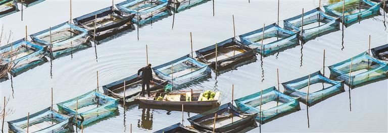 12月16日,蟹農(nóng)在山東省濟(jì)寧市微山縣和合漁村養(yǎng)蟹基地捕撈螃蟹。當(dāng)?shù)貙?shí)施蝦蟹混養(yǎng)、蟹魚混養(yǎng)等生態(tài)養(yǎng)殖方式,大閘蟹產(chǎn)業(yè)年產(chǎn)值近20億元。