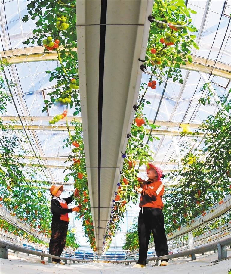 11月25日,江蘇省連云港市浦南鎮(zhèn)番茄莊園,工作人員在管護(hù)小番茄。近年來,當(dāng)?shù)卮罅Πl(fā)展以番茄采摘與品嘗為主題的綠色休閑基地和品牌番茄周邊產(chǎn)業(yè)。