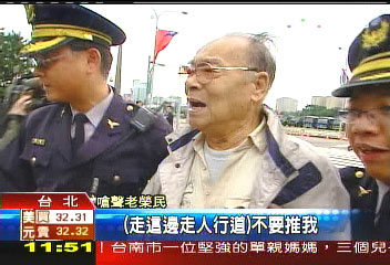 老榮民(1949年隨國民黨到臺灣的軍人退伍后稱為“榮民”)在陳水扁致詞時,沿著凱達格蘭大道沿路大罵陳水扁及臺當局“教育部長”杜正勝,立刻引起在場警察及特勤人員注意,警察立即上前將他帶離現場。