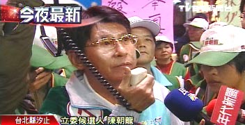 選戰最后一個星期,“立委”候選人使出十八般武藝,爭取媒體報道。民進黨提名的現任“立委”陳朝龍,因為不滿對手李慶華質疑他賄選,率領支持者到對方競選總部抗議。
