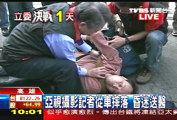 中國臺灣網1月11日消息 香港亞視攝影記者李東杰,今天在采訪臺灣“立委”競選活動時不慎從車上摔落,當場昏厥,立即被送醫急救。高雄醫學大學附屬醫院對傷者進行3個小時的開腦手術,但傷者仍處于深度昏迷狀態,至少留院兩三日,進一步治療。