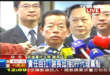 報道稱,1月12日島內“立委”選舉,國民黨大獲全勝,取得113個“立委”席次中的81席,民進黨僅得27席,遭到建黨以來最大的失敗,陳水扁當即辭去民進黨黨主席一職。12日晚間,經過民進黨內高層商議,由呂秀蓮推薦民進黨2008候選人謝長廷出任黨主席,謝長廷也表示“責無旁貸”。