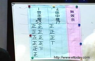 國民黨主席吳伯雄決定,抽簽決定得票次高的3位候選人誰能晉級第二輪,最后徐中雄抽中,但經(jīng)過投票之后,還是由曾永權(quán)出線。國民黨將以王曾配角逐下屆臺灣“立法院”正、副“院長”。(高大林)