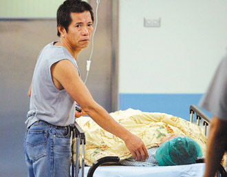 男童父親在醫(yī)院看護(hù)受傷的兒子。(圖片來(lái)源:臺(tái)灣《聯(lián)合報(bào)》)