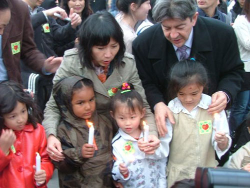 中國臺灣網(wǎng)5月19日消息 巴黎當(dāng)?shù)貢r(shí)間5月18號晚,近千名在法華人、華僑、留學(xué)生和法國友人聚集在埃菲爾鐵塔下,為“5?12”四川大地震遇難者舉行燭光祈福會,以表達(dá)對地震災(zāi)區(qū)逝者的哀思和對生者的祝福。法國前總統(tǒng)希拉克的養(yǎng)女英瑤?特拉塞爾(Mme. Anh Dao Traxel)女士作為本次活動的主辦支持人,與丈夫一起出席。法國社會黨籍前部長、現(xiàn)任參議員讓?呂克?梅朗雄也出席了本次活動。