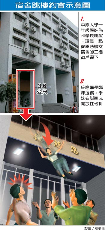 宿舍跳樓約會示意圖。來源:臺灣《聯合報》