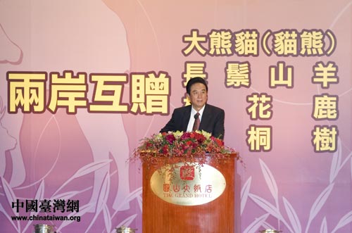 兩岸互贈珍稀動植物記者會今天在臺北舉行。這是陳云林在致辭。中國臺灣網 田云鵬攝