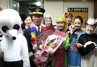 據臺灣“今日新聞”報道,26日四川航空公司首航成都——臺北,川航由總裁藍新國親自率領,并派出最菁英的機組人員執行首航航班,空服員特別選派“民族之花”乘務組,穿著七大少數民族的傳統服飾,還有兩位空姐身著可愛的熊貓裝,堪稱為首航煞費苦心。