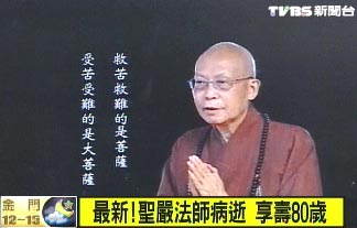 臺灣法鼓山創辦人圣嚴法師近年來疾病纏身,健康狀況一直不甚理想,最后還是不敵病魔,于今天下午4點04分,病逝臺大醫院,享壽79歲。(高大林)