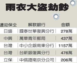 臺北驚現雨衣大盜 8年搶5次銀行得手數千萬
