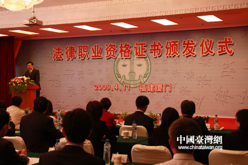 中國臺灣網4月12日廈門消息 昨天下午,司法部國家司法考試辦公室為首批通過國家司法考試,獲得法律職業資格的臺灣居民頒發了《法律職業資格證書》。獲頒證書的臺灣居民紛紛表示,國家司法考試向臺灣居民打開大門,為海峽兩岸的法律交流與溝通架起了一座新平臺。