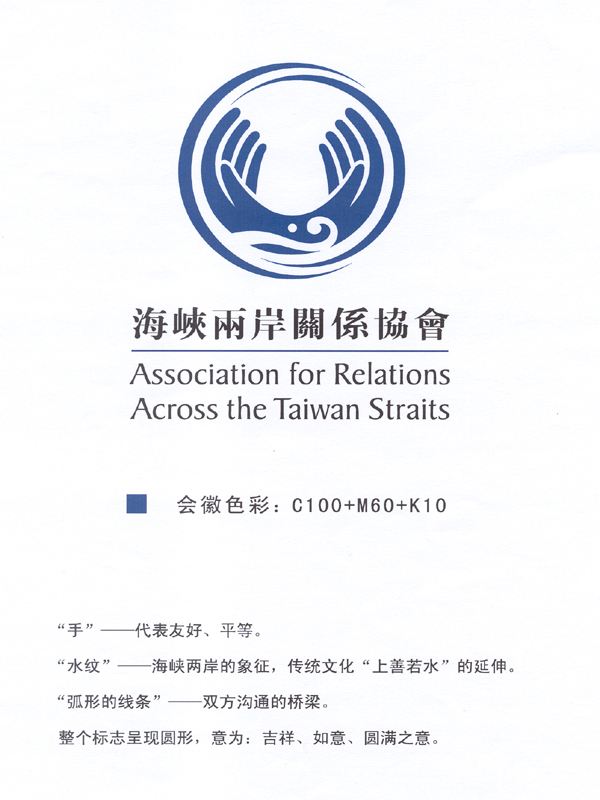 海協(xié)會徽記公告指出,翻卷的浪花及交融的水紋,象征著海峽兩岸割舍不斷的聯(lián)系;“浪花”中升涌而成的雙手,滿掬欲握,形象表達(dá)了兩岸同胞交流合作、平等協(xié)商的共同愿望,也點染出海協(xié)會承擔(dān)的歷史使命。動感的雙弧線交匯成一個圓形將浪花和雙手緊緊包容,體現(xiàn)了中華文化中“和諧”、“圓融”的精神,寓意著兩岸同胞血脈相連,命運(yùn)與共,攜手推進(jìn)兩岸關(guān)系和平發(fā)展,共同實現(xiàn)中華民族偉大復(fù)興。