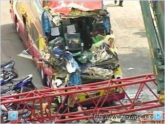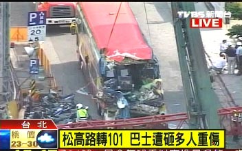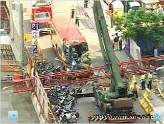 組圖:廣東旅客游覽車在臺北遭起重機吊臂砸中