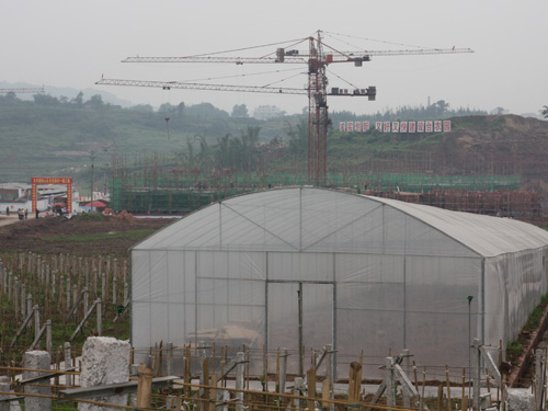 位于重慶市北碚區(qū)的重慶臺(tái)灣農(nóng)民創(chuàng)業(yè)園,仍然在不斷建設(shè)當(dāng)中,近處的大棚則是火龍果的育苗大棚。(中國(guó)臺(tái)灣網(wǎng) 楊麗 攝)