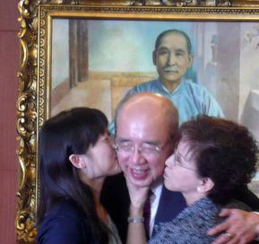 慶生現(xiàn)場(chǎng),馬英九等人為吳伯雄高唱“生日快樂”,國民黨“立委”洪秀柱、江玲君兩人還獻(xiàn)吻,在吳伯雄臉頰留下了兩個(gè)口紅印。(羅煜明)