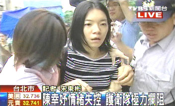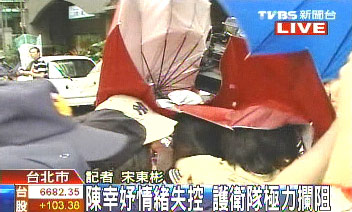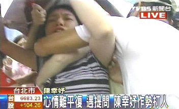眼見陳幸妤崩潰,由“深綠”人士組成的保護陳幸妤的“護衛隊”和其工作的診所護士,立刻一涌而上,安撫、保護陳幸妤進入診所,以避免失控情緒擴大。