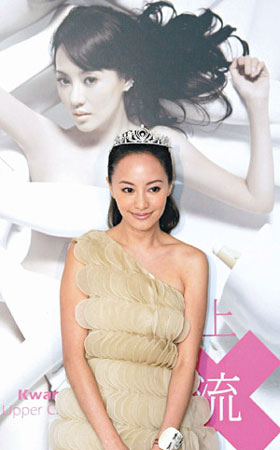 關(guān)穎的新書記者會,身后照片突破入行以來拍攝最大尺度。圖片來源:臺灣《聯(lián)合報》
