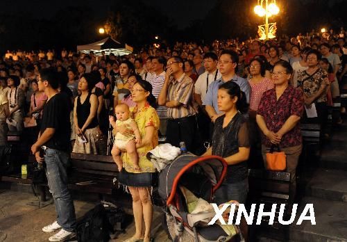 8月26日,在“臺北有愛、情系人間”七夕情人節(jié)祈福音樂會開始之際,臺北市民為風災(zāi)罹難者祈禱。臺北市交響樂團用音樂為風災(zāi)災(zāi)民送上了祝福。圖片來源:新華社