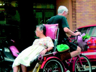 據(jù)臺灣《聯(lián)合報》報道,桃園縣大街上,70歲的涂春雄緩緩騎著三輪車,特別小心翼翼,后頭載著他心愛的老婆大人郭金枝。他的妻子在5年前因車禍導(dǎo)致下半身癱瘓,擔心整天悶在家里會患憂郁癥,他親自動手改裝三輪車,還在后座加裝沙發(fā)坐墊,每天載著老婆到處去兜風。七夕當天,涂春雄說“我一定要讓你和平常一樣……”,郭金枝牽著涂春雄雙手直說“謝謝您,我們倆天天都過情人節(jié)”。(羅煜明)