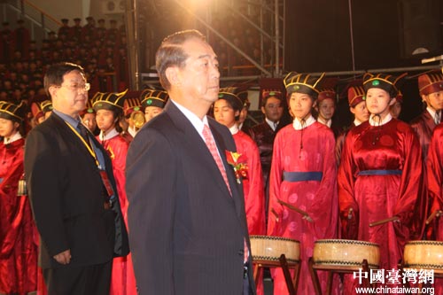 9月27日上午,2009年第二屆兩岸師生聯(lián)合祭孔大典在臺灣新竹縣立體育館舉行,圖為親民黨主席宋楚瑜先生受邀主禮正獻。(中國臺灣網(wǎng) 李杰 攝)