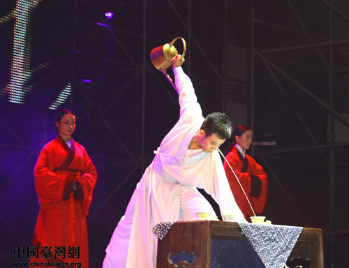 北京孔廟國學(xué)館茶道總監(jiān)銀漢晴在27日新竹舉行的兩岸師生祭孔大典后,為兩岸師生作了精彩的茶藝表演,他對記者表示,兩岸文化一脈相承,有很多相通之處,兩岸民眾都喜歡飲茶,所以自己選擇用茶道這種方式交流,希望借此建立起兩岸友誼的橋梁,讓更多年輕人加深對傳統(tǒng)文化的了解。同時他也希望此行是個引子,能夠真正與島內(nèi)茶道同行中人建立聯(lián)系,進(jìn)行相互切磋和學(xué)習(xí)。