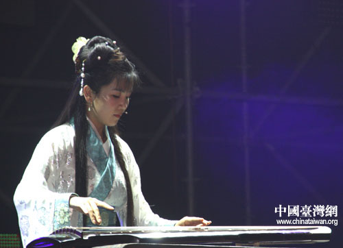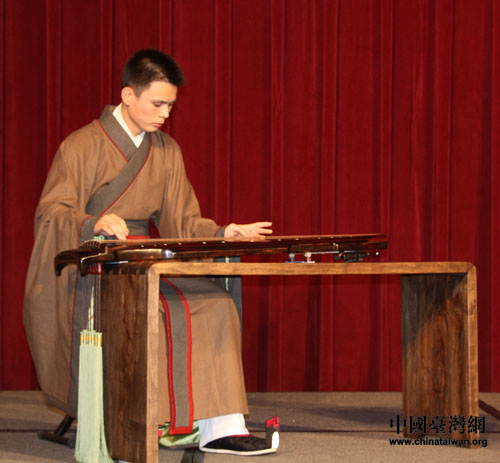 北京孔廟和國子監(jiān)博物館工作人員為兩岸師生表演古琴。(中國臺灣網(wǎng) 李杰 攝)